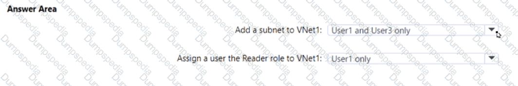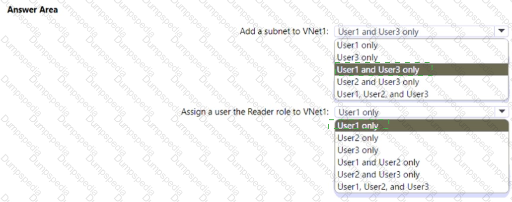 You have an Azure subscription named Subscription1 that contains a virtual network named VNet1. You add the users in the following table.