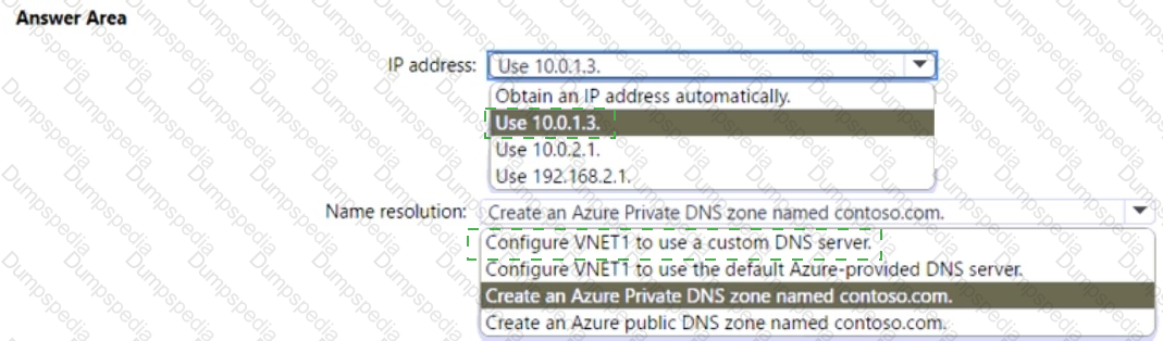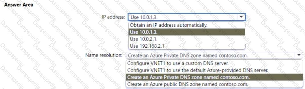 You need to move DC1 to VNET1. The solution must ensure that the member servers in contoso.com can resolve AD DS DNS names.