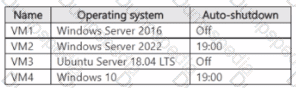 You have an Azure subscription that has a Recovery Services vault named Vault 1. The subscription contains the virtual machines shown in the following table.