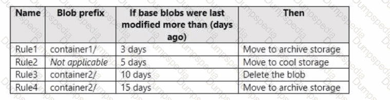 You have an Azure subscription. The subscription contains a storage account named storage1 that has the lifecycle management rules shown in the following table.
