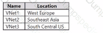 You have an Azure subscription that contains the virtual networks shown in the following table.