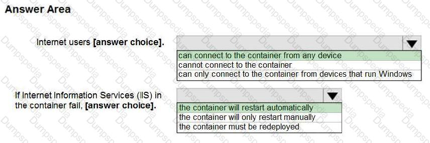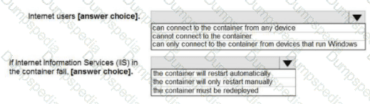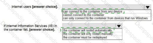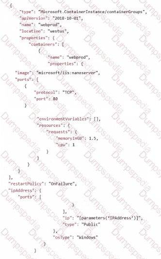 You plan to deploy an Azure container instance by using the following Azure Resource Manager template.