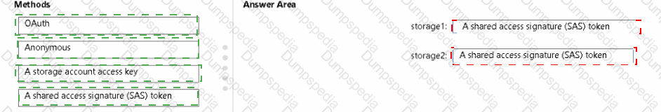You plan to use AzCopy to copy a blob from contained directly to share. You need to identify which authentication method to use when you use AzCopy.