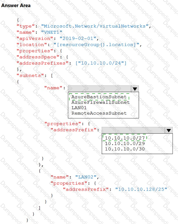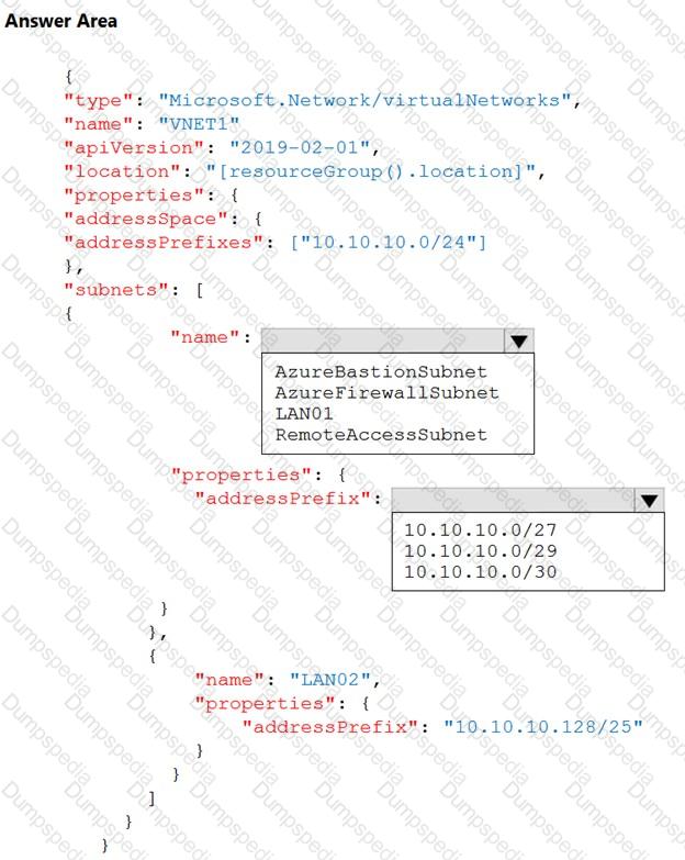 You plan to use an Azure Resource Manager template to deploy a virtual network named VNET1 that will use Azure Bastion.
