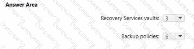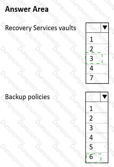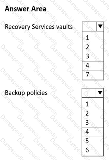 What is the minimum number of Recovery Services vaults and backup policies you should create? To answer, select the appropriate options in the answer area.