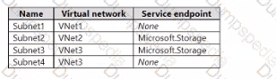The subscription contains the subnets shown in the following table.