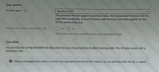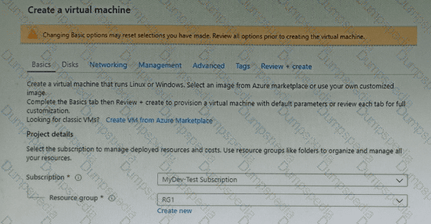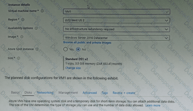 You plan to create an Azure virtual machine named VM1 that will be configured as shown in the following exhibit.