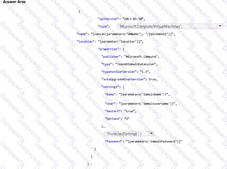 You create the following Azure Resource Manager (ARM) template named Templatejson.