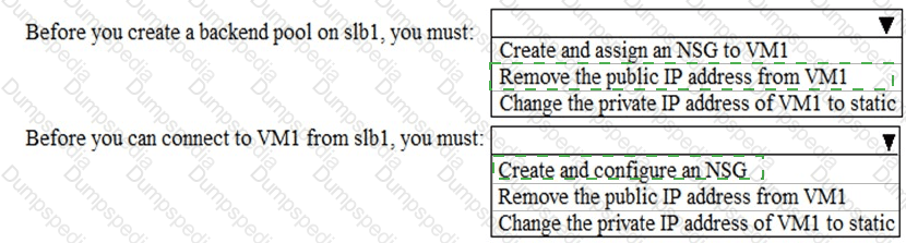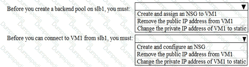 Which changes should you apply to VM1 as you configure slb1? To answer, select the appropriate options in the answer area.