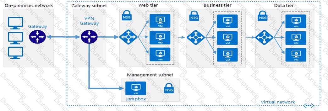 Each subnet contains a network security group (NSG) that has defined rules.