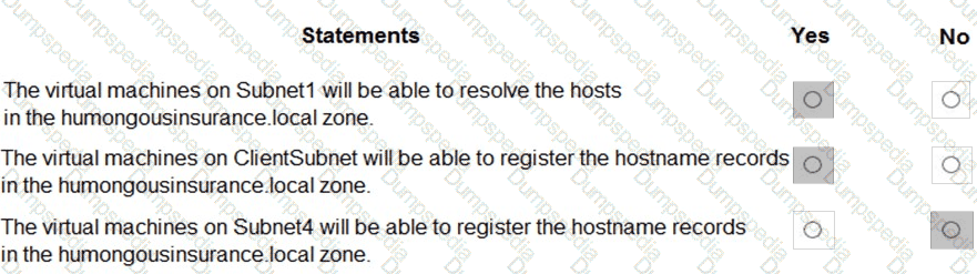 For each of the following statements, select Yes if the statement is true. Otherwise, select No.