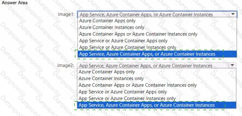 Which Azure services can you use for each image? To answer, select the appropriate options in the answer area.
