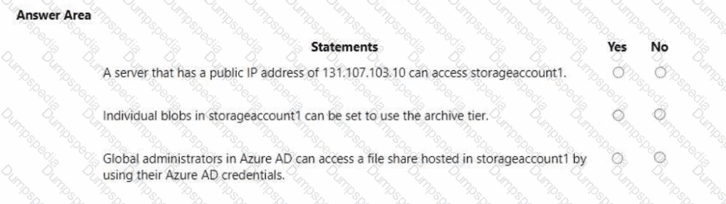 You have an Azure subscription that contains an Azure Storage account named storageaccount1.