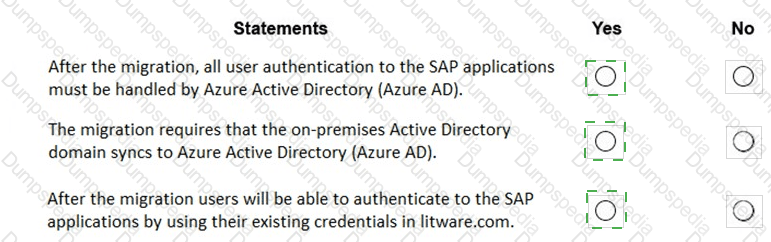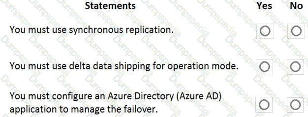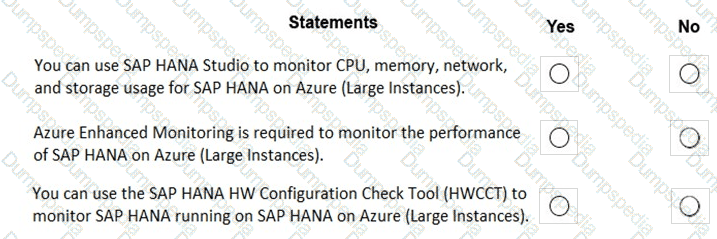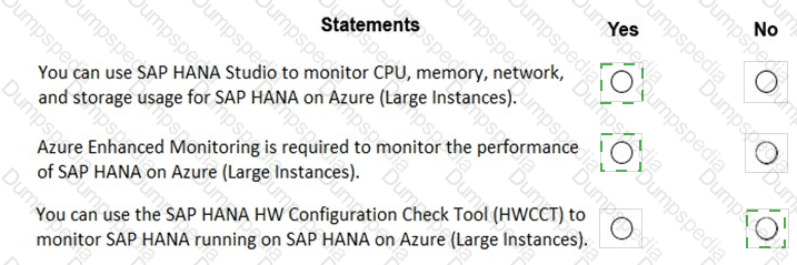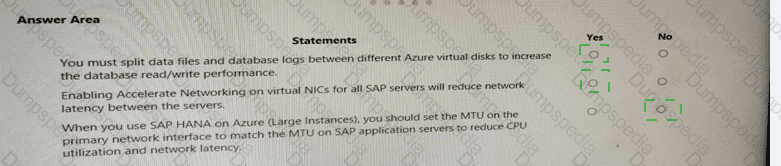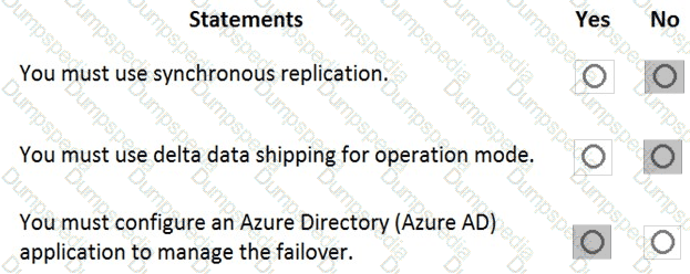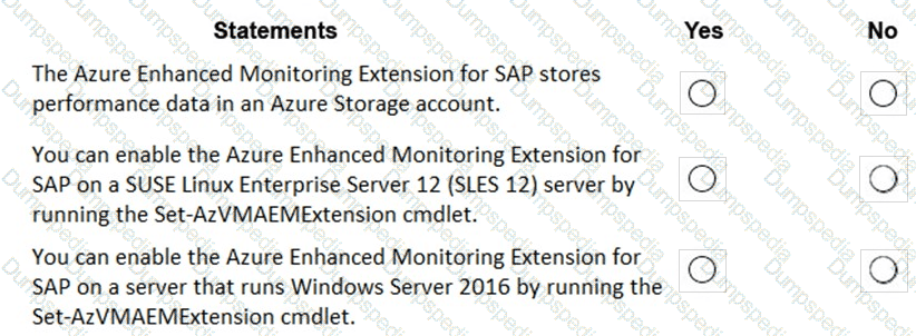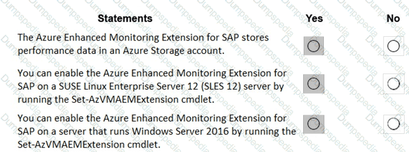 For each of the following statements, select Yes if the statement is true. Otherwise, select No. NOTE: Each correct selection is worth one point.