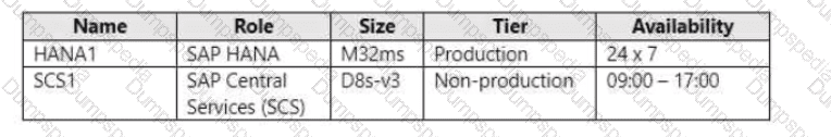 You have an SAP production landscape on Azure that contains the resources shown in the following table.