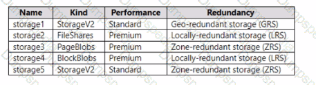 You have an Azure Virtual Desktop deployment and the Azure Storage accounts shown in the following table.