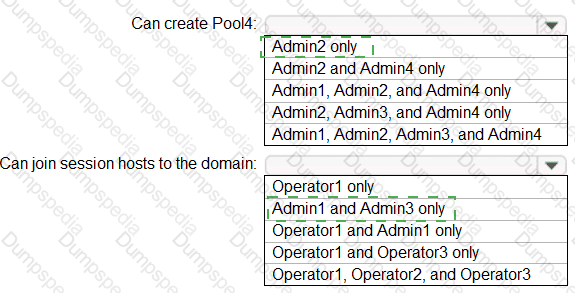 Which users can create Pool4, and which users can join session hosts to the domain? To answer, select the appropriate options in the answer area.