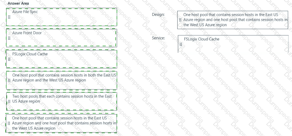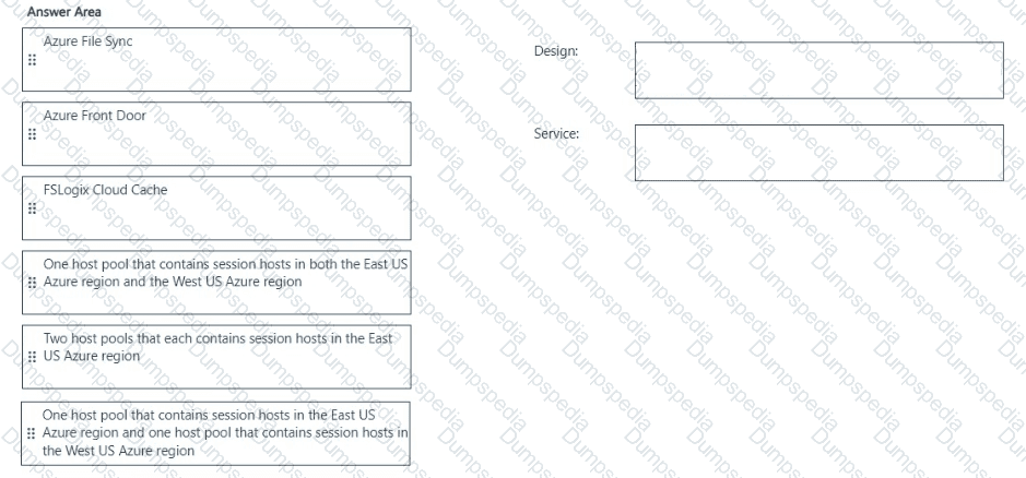 Which host pool design and which service should you configure to meet the disaster recovery requirements? To answer, drag the appropriate solution to the correct requirements. Each solution may be used once, more than once, or not at all. You may need to drag the split bar between panes or scroll to view content