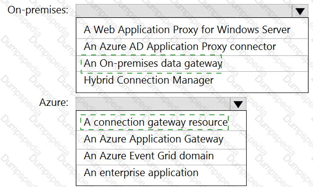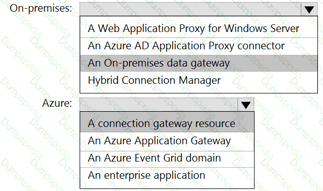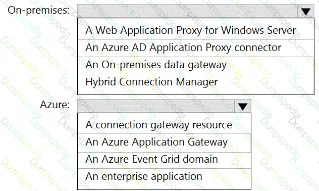 What should you deploy to the Azure subscription and the on-premises network? To answer, drag the appropriate services to the correct locations. Each service may be used once, more than once, or not at all. You may need to drag the split bar between panes or scroll to view content.