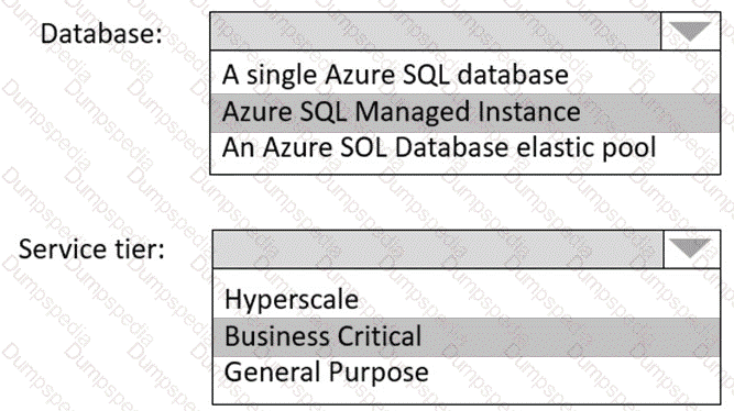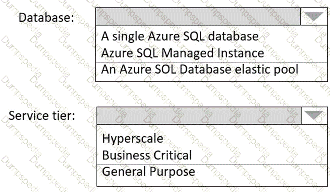 You need to ensure that the Azure database and the service tier meet the resiliency and business requirements.