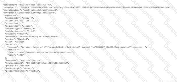 You have an Azure application gateway that has Azure Web Application Firewall (WAF) enabled.