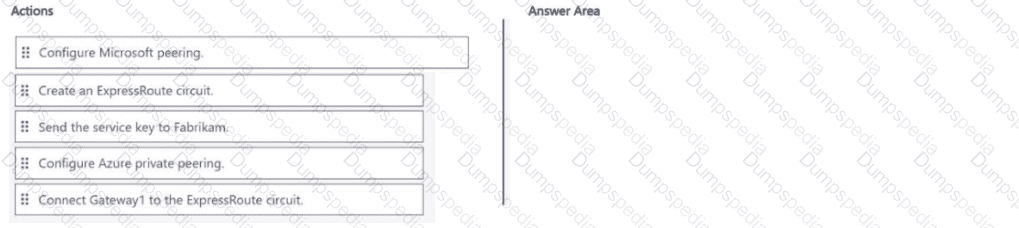 You need to implement an ExpressRoute solution from a third-party provider named Fabrikam, Inc. The solution must ensure that devices on the on-premises network can connect to the Azure resources on VNet1.