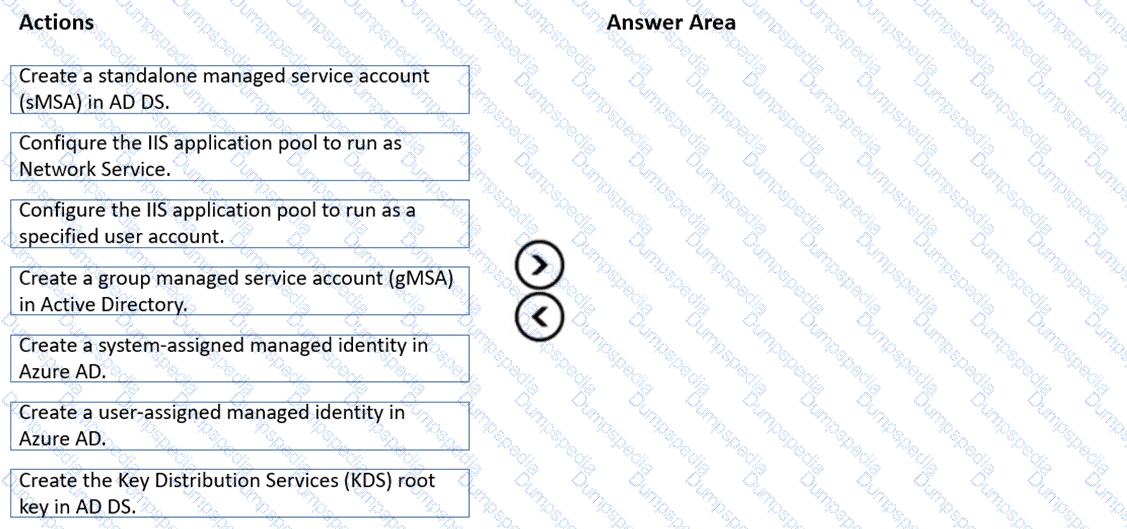 Which actions should you perform in sequence? To answer, drag the appropriate actions to the correct order. Each action may be used once, more than once, or not at all. You may need to drag the split bar between panes or scroll to view content.