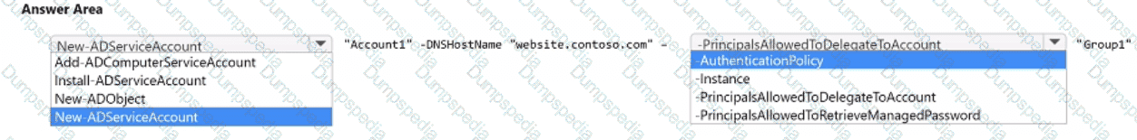 You need to create a group managed service account (gMSA) named Account1. The solution must ensure that Group1 can use Account1.