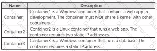 You have a Windows Server container host named Server! that has a single disk. On Server1, you plan to start the containers shown in the following table.