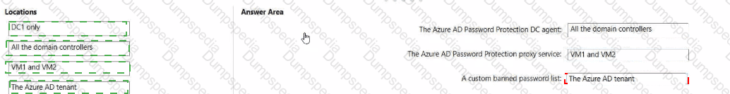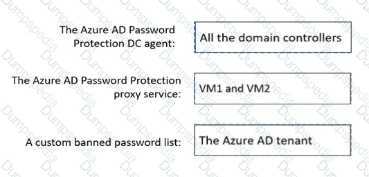 Where should you configure the components for Azure AD Password Protection? lo answer, drag the appropriate components to the correct locations. Each component may be used once, more than once, or not at all. You may need to drag the split bar between panes or scroll to view content.