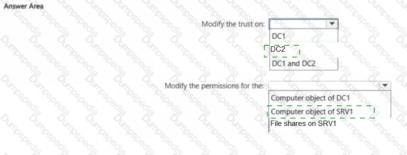 You need to ensure that users from contoso.com can access only shared resources hosted on SRV1. The solution must meet the following requirements: