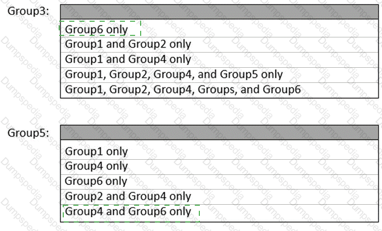 Which groups can you add to Group3 and Group5? To answer, select the appropriate options in the answer area.