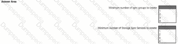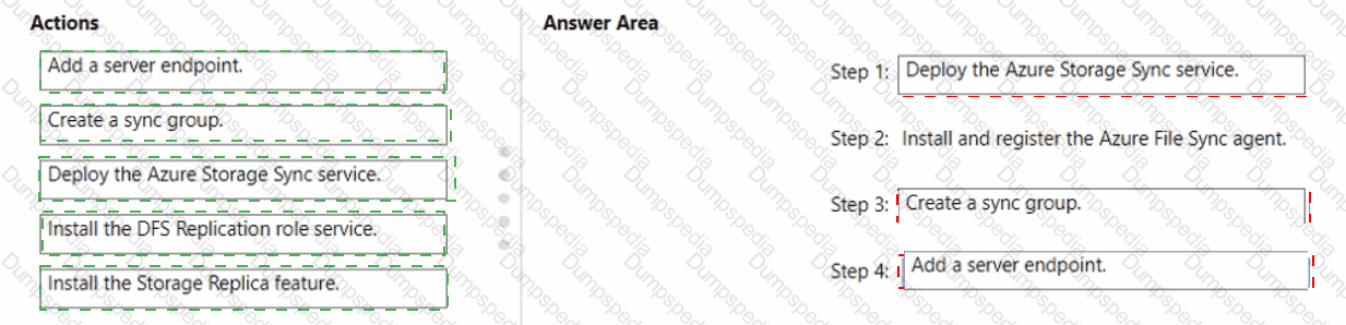 You need to configure Azure File Sync to meet the file sharing requirements. What should you do? To answer, select the appropriate options in the answer area. NOTE Each correct selection is worth one point.