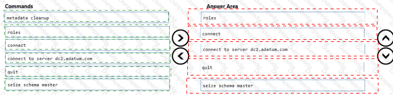 Which five commands should you run in sequence? To answer, move the appropriate commands from the list of commands to the answer area and arrange them in the correct order?