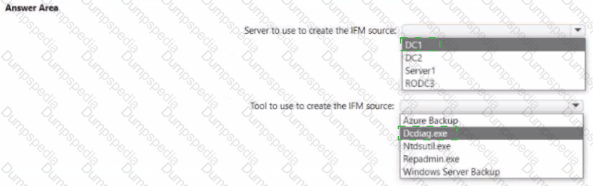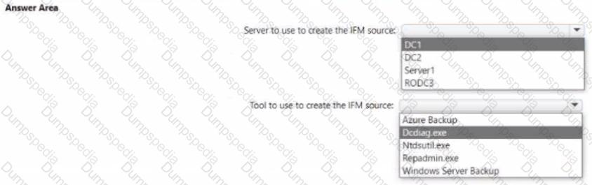 You need to promote Server1 to an ROOC in child.contoso.com by using the install from Media (IFM) option. The solution must minimize network traffic.