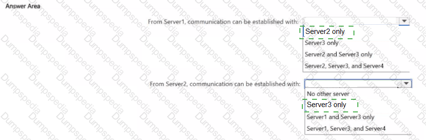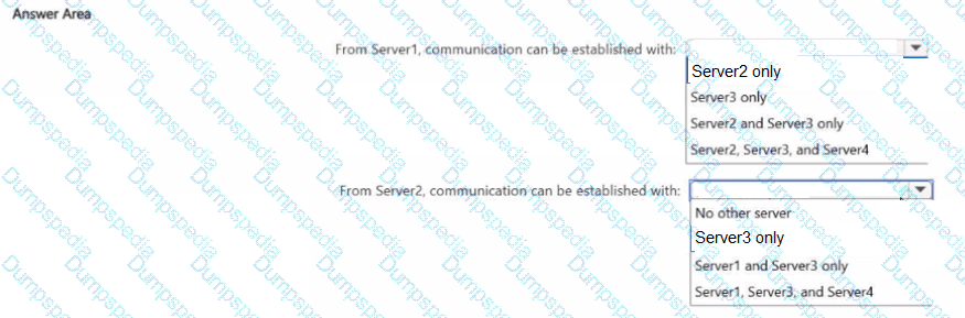 With which servers can Server1 and Server2 establish communication after the connection security rules are applied? To answer, select the appropriate options in the answer area.