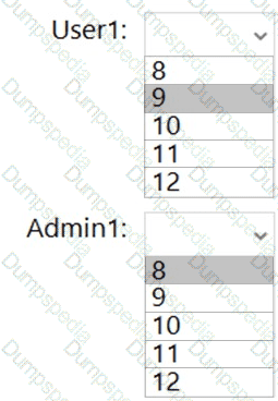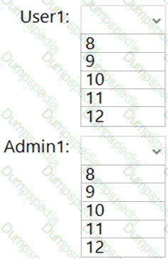 What is the effective minimum password length for User1 and Admin1? To answer, select the appropriate options in the answer area.