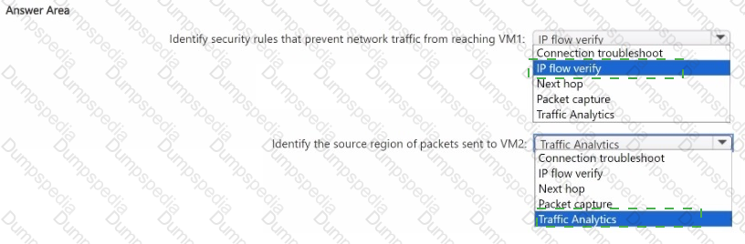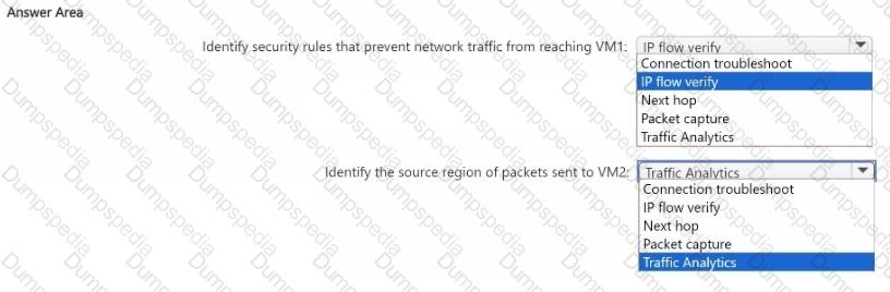You have an Azure subscription. The subscription contains two virtual machines named VM1 and VM2 that run Windows Server. You need to use Azure Network Watcher to meet the following requirements;