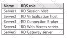 You have a Windows Server 2022 Remote Desktop Services deployment that includes the servers shown in the following table.