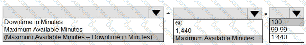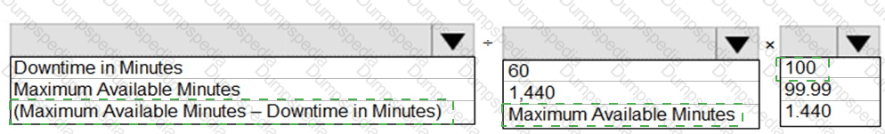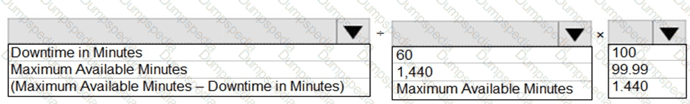 How should you calculate the monthly uptime percentage? To answer, select the appropriate options in the answer area.