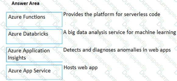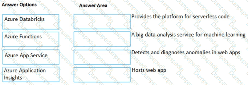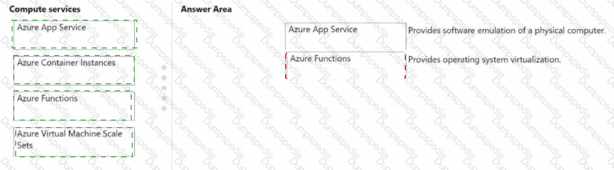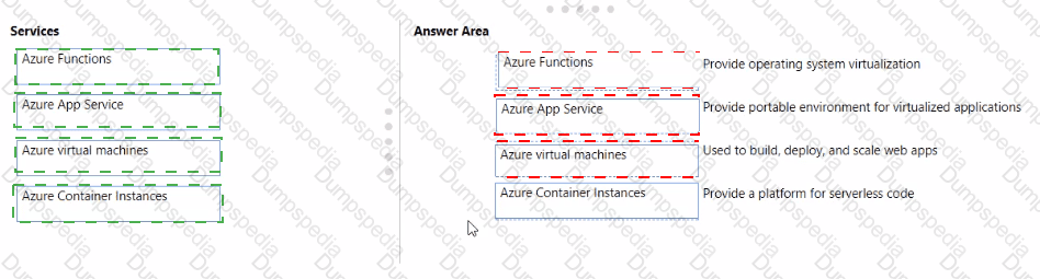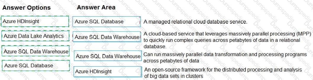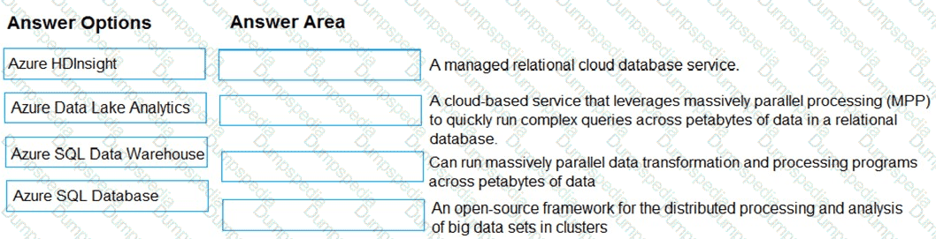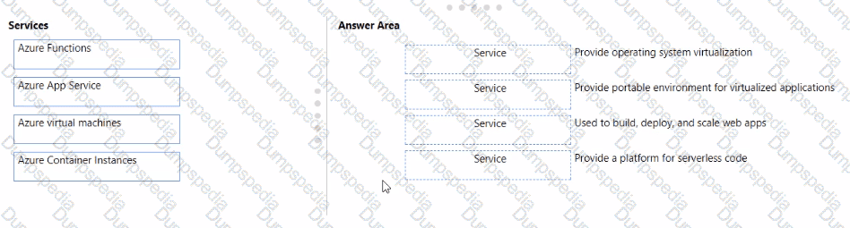 Instructions: To answer, drag the appropriate Azure service from the column on the left to its description on the right. Each service may be used once, more than once, or not at all.