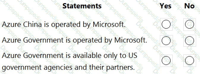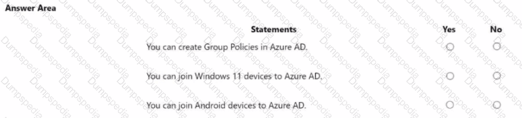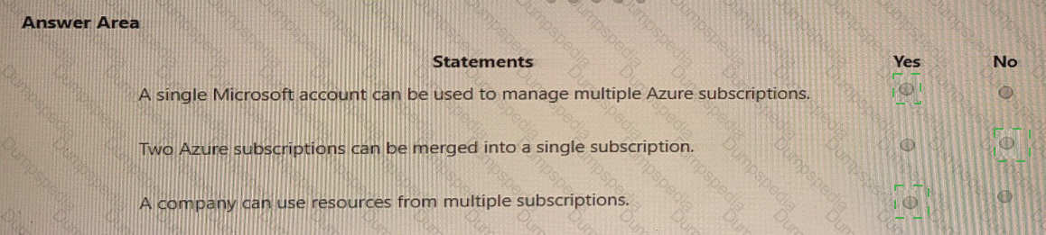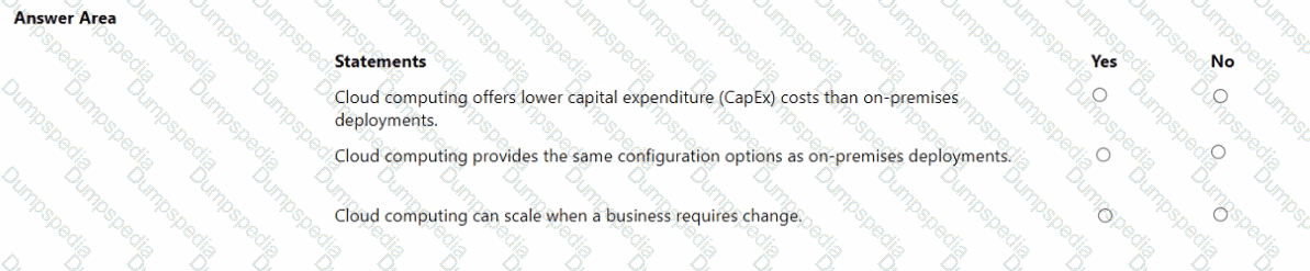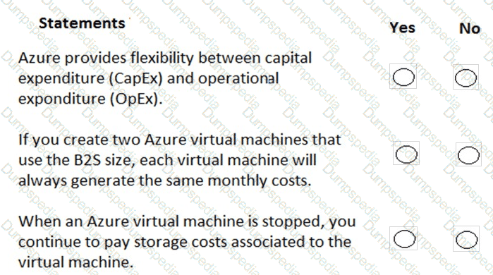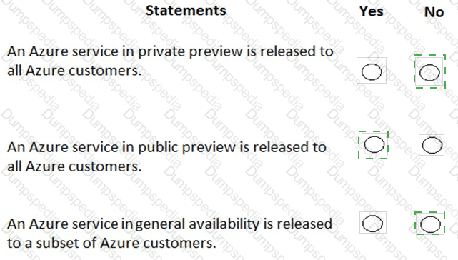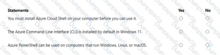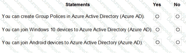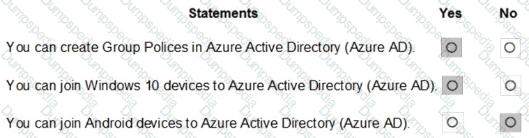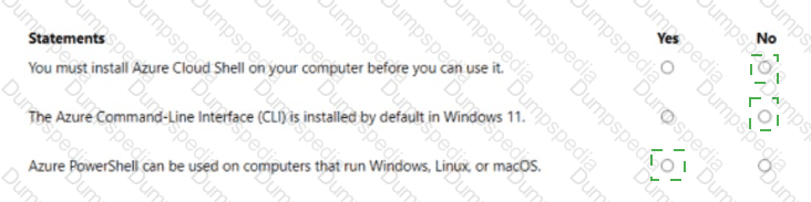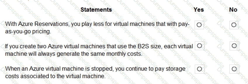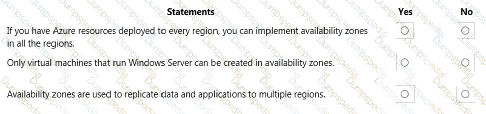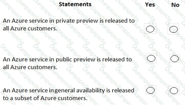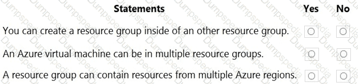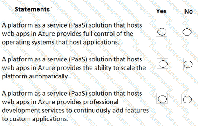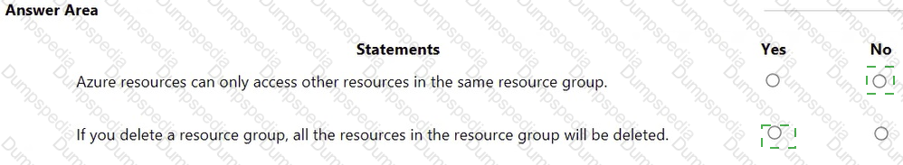 For each of the following statements, select Yes if the statement is true. Otherwise, select No.