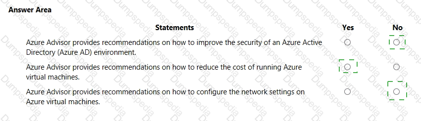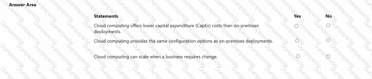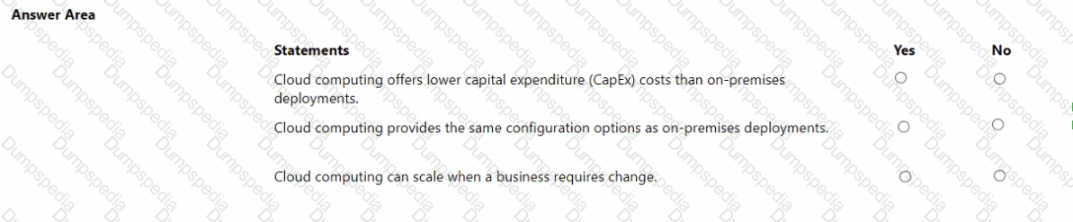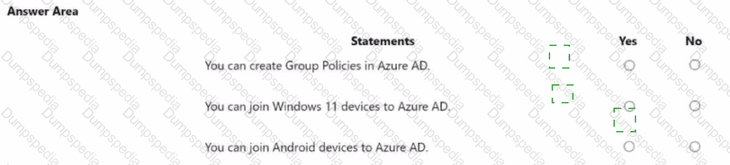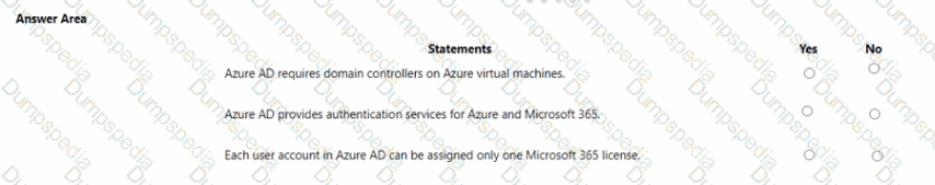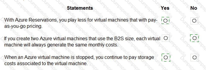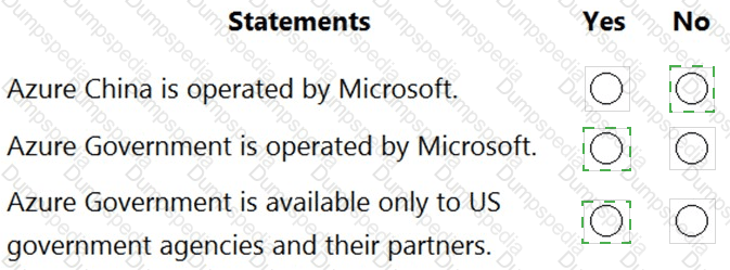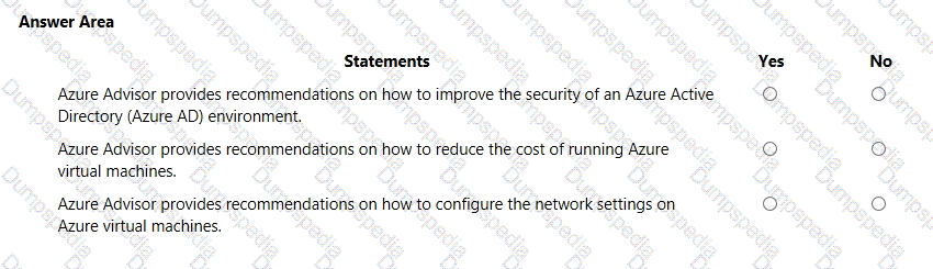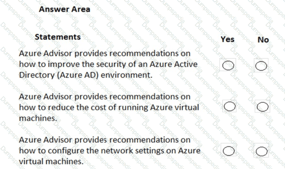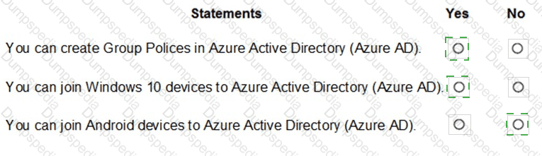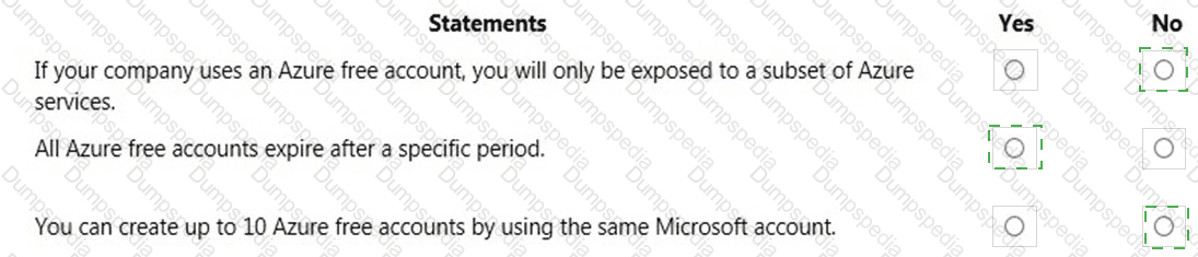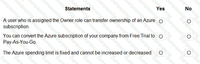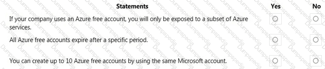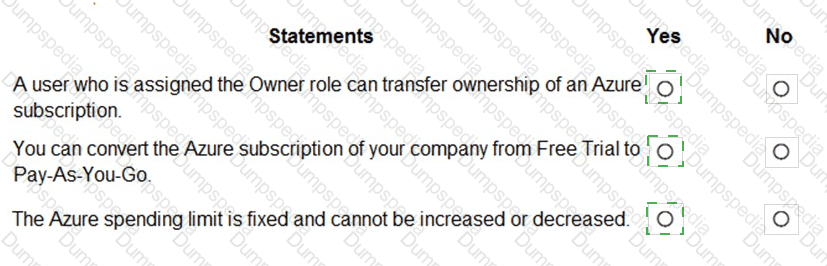 For each of the following statements, select Yes if the statement is true. Otherwise, select No.