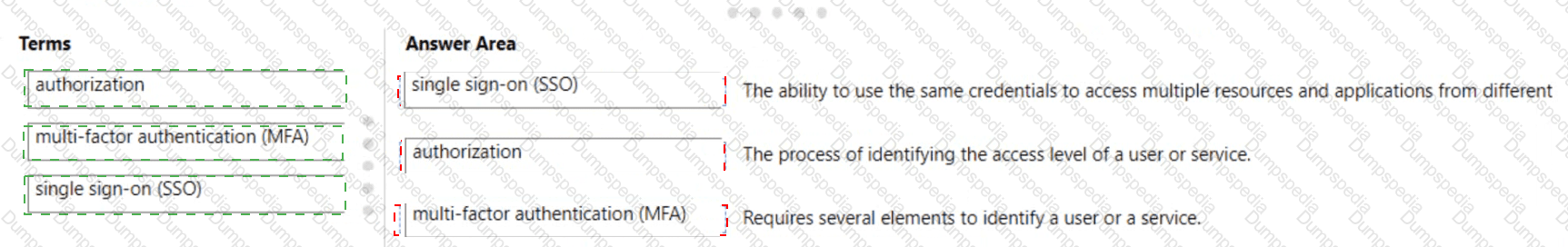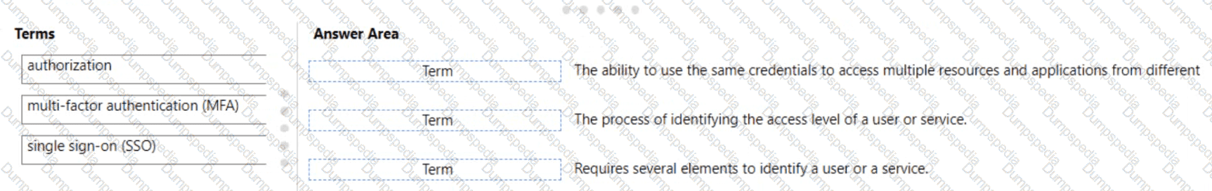 To answer, drag the appropriate term from the column on the left to its description on the right. Each term may be used once, more than once, or not at all.