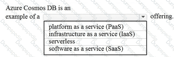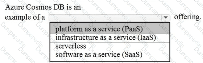 Azure Cosmos DB is an example of a platform as a service (PaaS) offering.