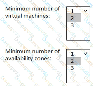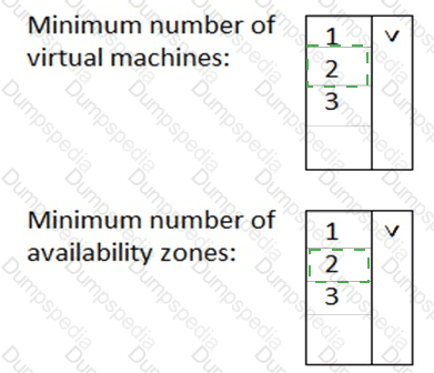 What is the minimum number of virtual machines and the minimum number of availability zones you should recommend for the deployment? To answer, select the appropriate options in the answer area.