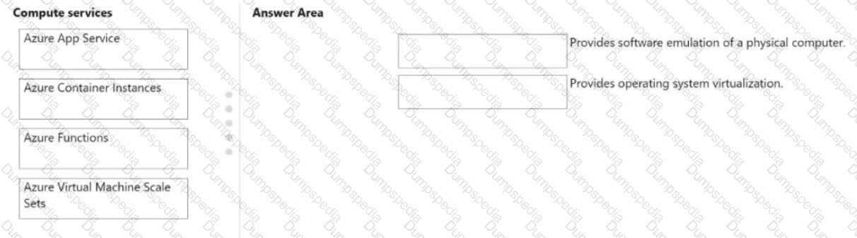 To answer, drag the appropriate compute service from the column on the left to its description on the right Each service may be used once, more than once, or not at all.