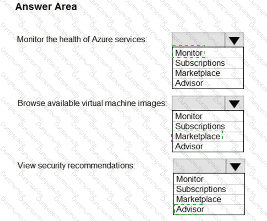 Which blade should you use from the Azure portal? To answer, select the appropriate blade in the answer