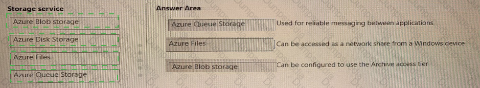 To answer, drag the appropriate storage service from the column on the left to its description on the right. Each service may be used once, more than once, or not at all.