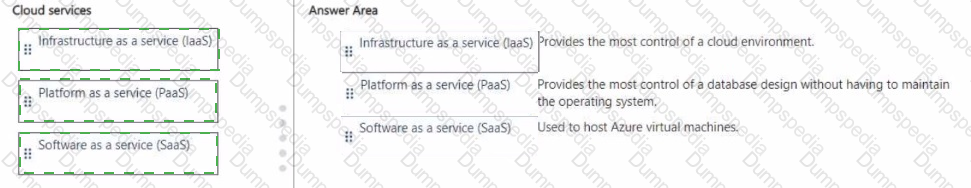 To answer, drag the appropriate cloud service from the column on the left to its description on the right. Each service may be used once, more than once, or not at all.